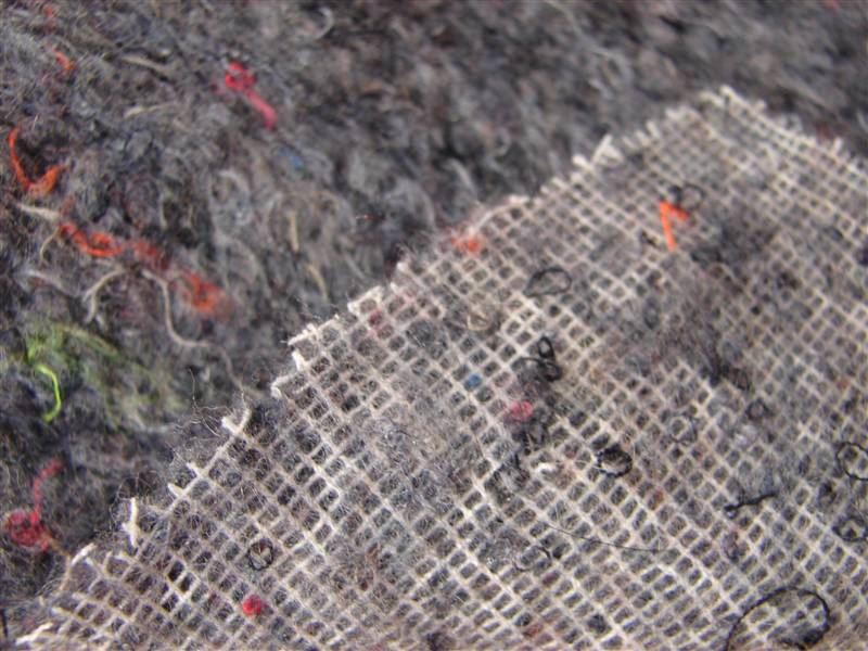 Perlinka z modifikovaných akrylátů - primárních vláken, do ní je vpichnutý recyklovaný aramidový vlákenný materiál.